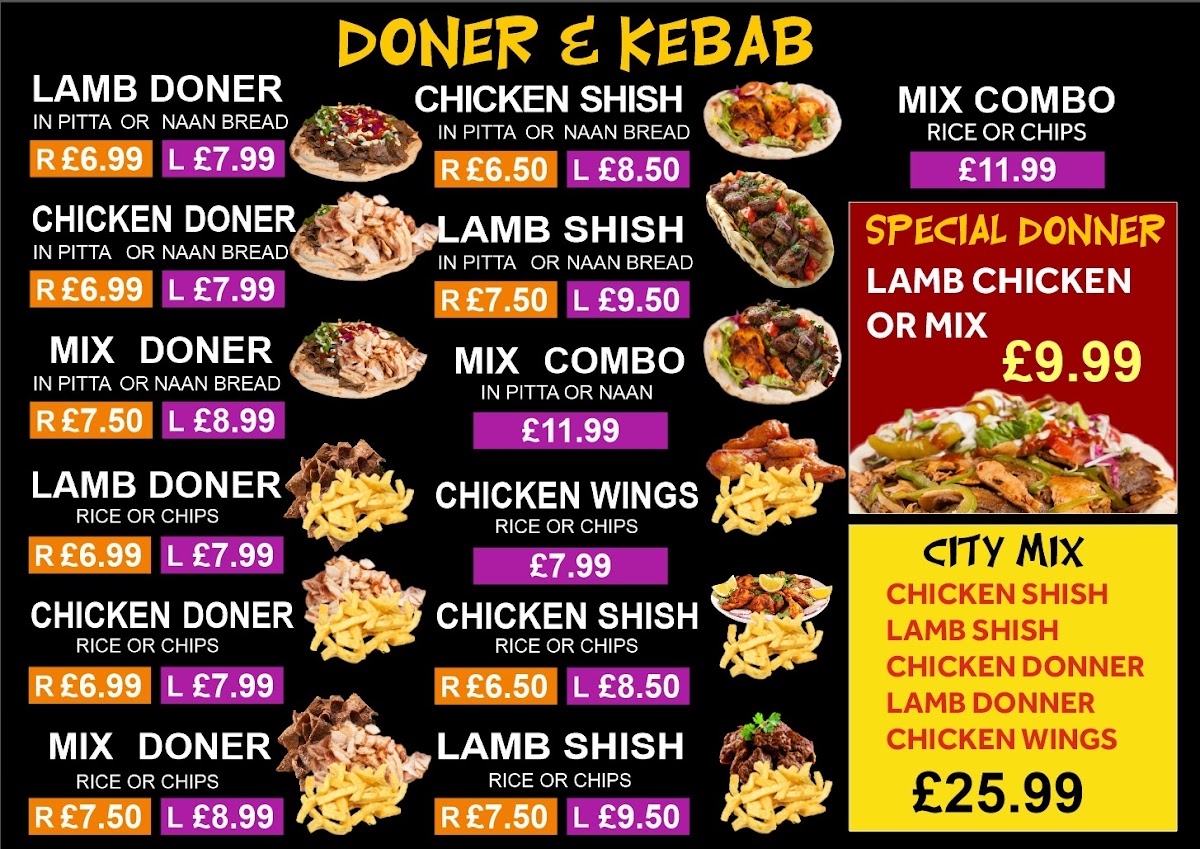 Welcome to City Kebab's, a culinary gem located at 88-89 Digbeth, Birmingham. This eatery is a paradise for kebab enthusiasts and affordable fast food lovers alike. The menu boasts an enticing variety of options, including juicy lamb and chicken donner kebabs, alongside flavorful shish and delicious chicken wings. Each dish encapsulates the rich flavors one expects from authentic kebab cuisine.